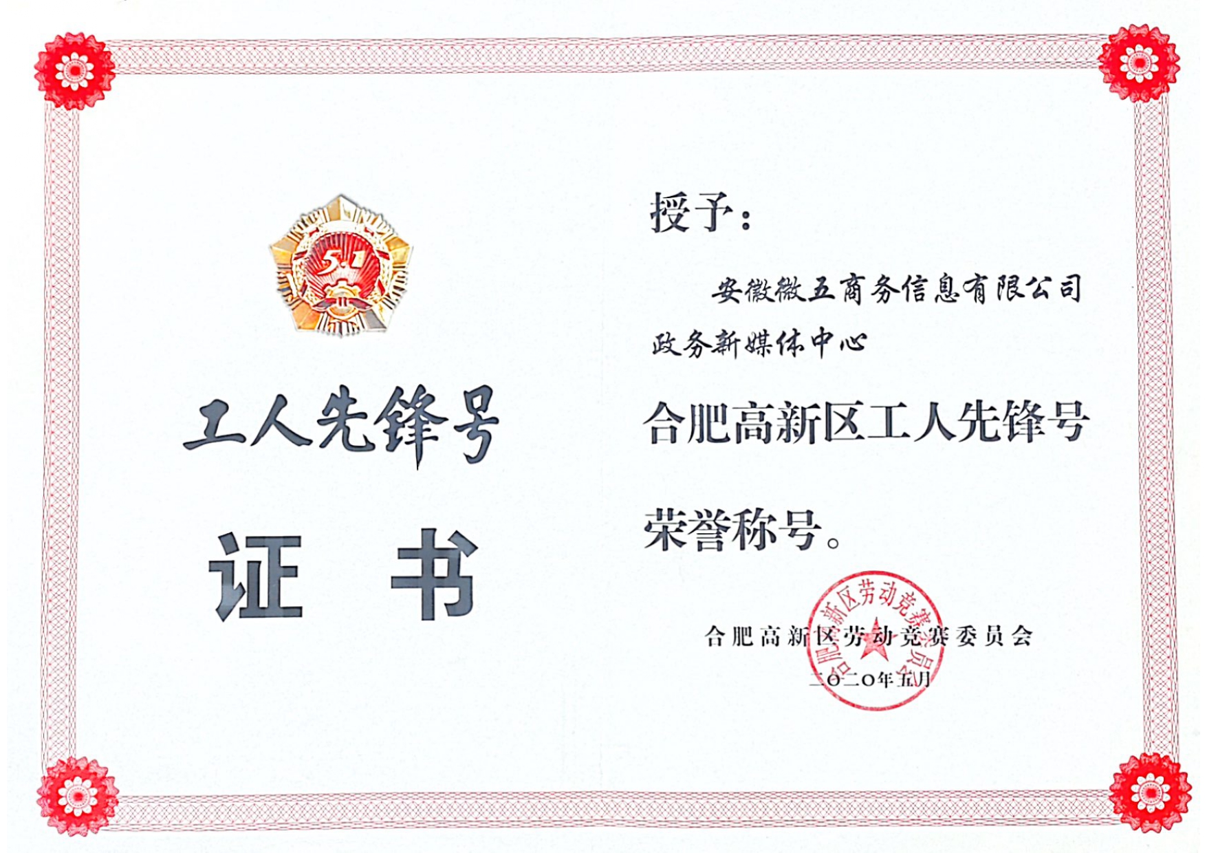 合肥高新区工人先锋号荣誉称号